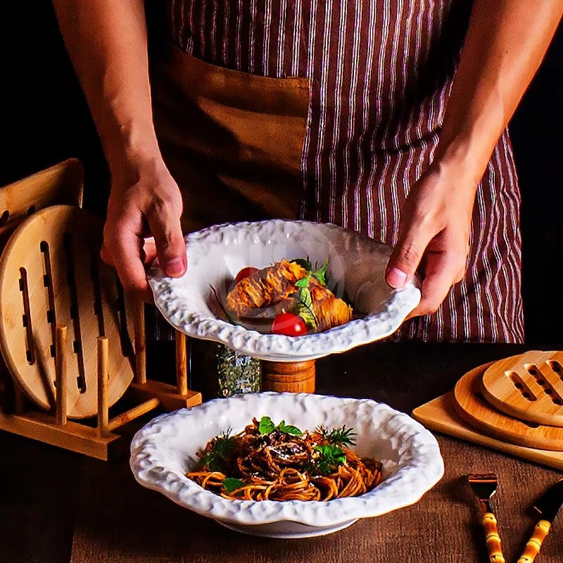 You are here: Home » Products » Ceramic Plates » High-End White Ceramic Plate with Rock Pattern Elegant Design Deep Dinner Soup Plate for Home Hotel and Restaurant Tableware